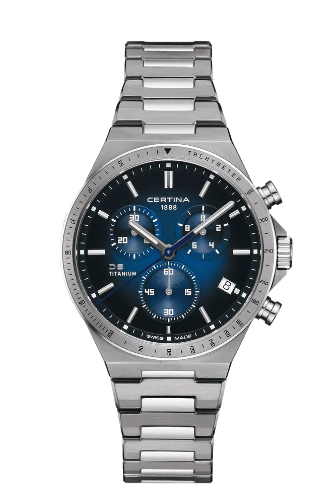 Taggar Blå tavla, Certina, Chronograph, Herrklockor, Safirglas, Titan